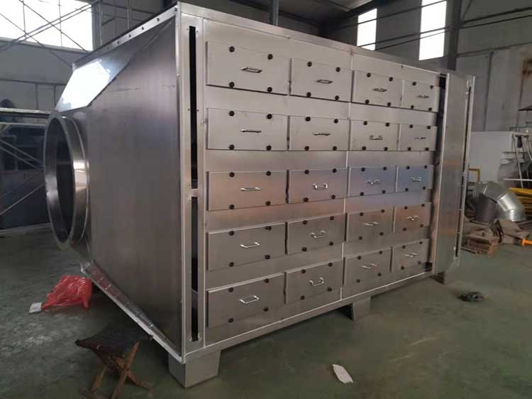 1、活性炭吸附箱是用活性炭的吸附功能,將廢氣吸附在活性炭里面?;钚蕴繜o臭無味,具有表面積大吸附為強(qiáng)、純度高、濾速快、質(zhì)量穩(wěn)定,具有絮凝效應(yīng)和助濾效應(yīng)等特點(diǎn)。