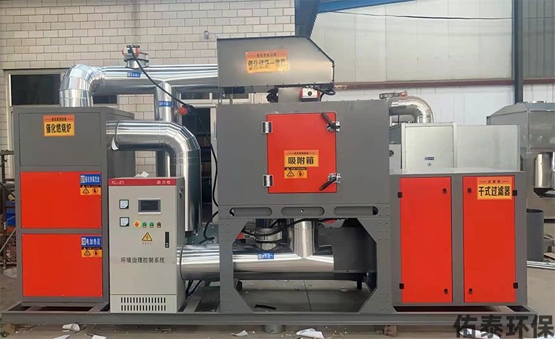 在以上有機廢氣處理設備中,催化燃燒裝置和活性炭吸附箱應用量大,催化燃燒裝置是將廢氣中的有機物通過催化劑,在高溫的條件下無焰燃燒,轉(zhuǎn)化為二氧化碳和水來排放。是現(xiàn)在主流的有機廢氣處理方式。