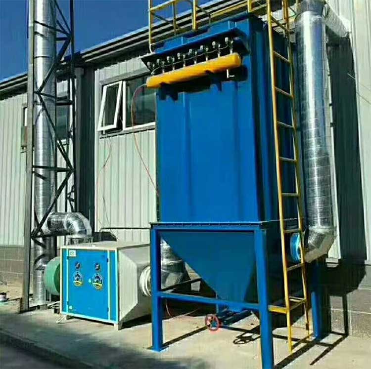 在車間各揚塵點采用吸罩通過吸塵管道進入布袋除塵器,后通過布袋再次收集,經過過濾后的凈化氣體通過風機排出。