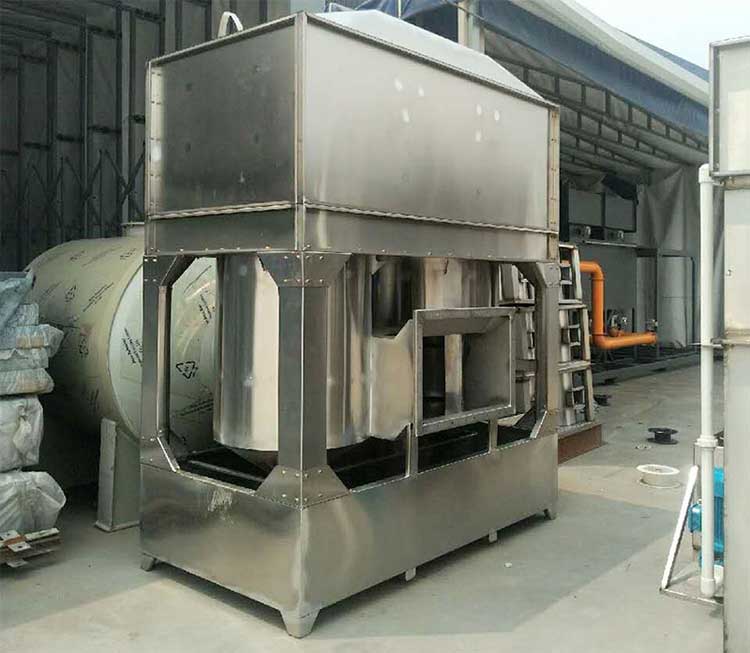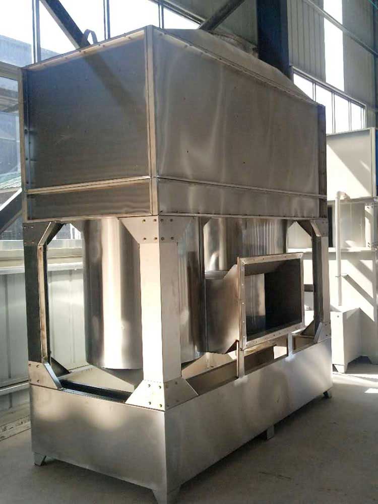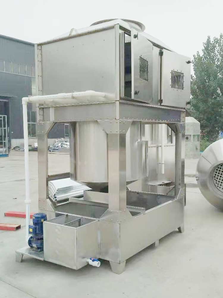 含塵廢氣由風(fēng)管引入凈化塔,經(jīng)過旋轉(zhuǎn)洗滌桶時(shí)風(fēng)帶加快,帶動(dòng)填料球飛帶運(yùn)轉(zhuǎn),在洗滌桶里,含塵廢氣與水霧沖鋒混合洗滌、中和反應(yīng)(水里面補(bǔ)充有酸堿時(shí)),廢氣經(jīng)過凈化后,再經(jīng)除霧層脫水除霧后由風(fēng)機(jī)排入大氣或再進(jìn)入其他凈化設(shè)備(光氧催化、低溫等離子等)、吸收液再塔底經(jīng)水泵增壓后在箱頂噴淋霧化而下,***后回流至箱底循環(huán)使用,凈化后的廢氣達(dá)到國家排放標(biāo)準(zhǔn)。