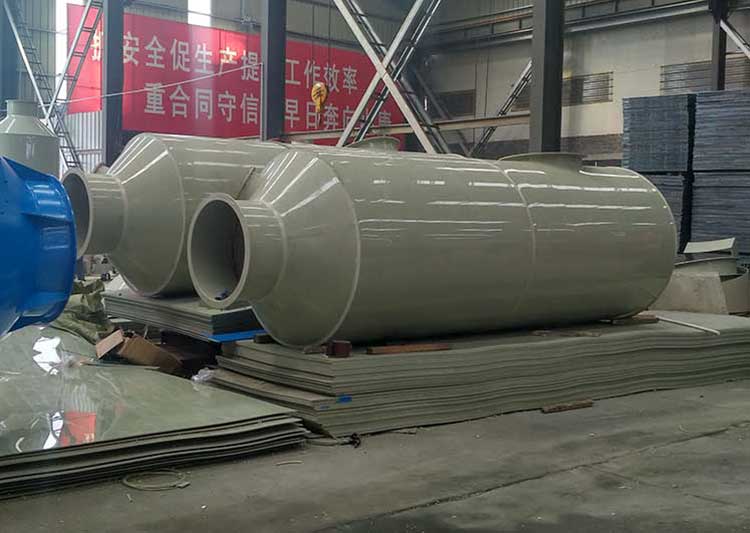 1.5萬風(fēng)量酸霧凈化塔規(guī)格為:ф1.8m*H4.0m*10mm。進(jìn)、出風(fēng)口直徑均為600mm。循環(huán)水量每小時(shí)22立方。每小時(shí)處理廢氣量16800立方。凈化塔整體厚度為10mm PP板。