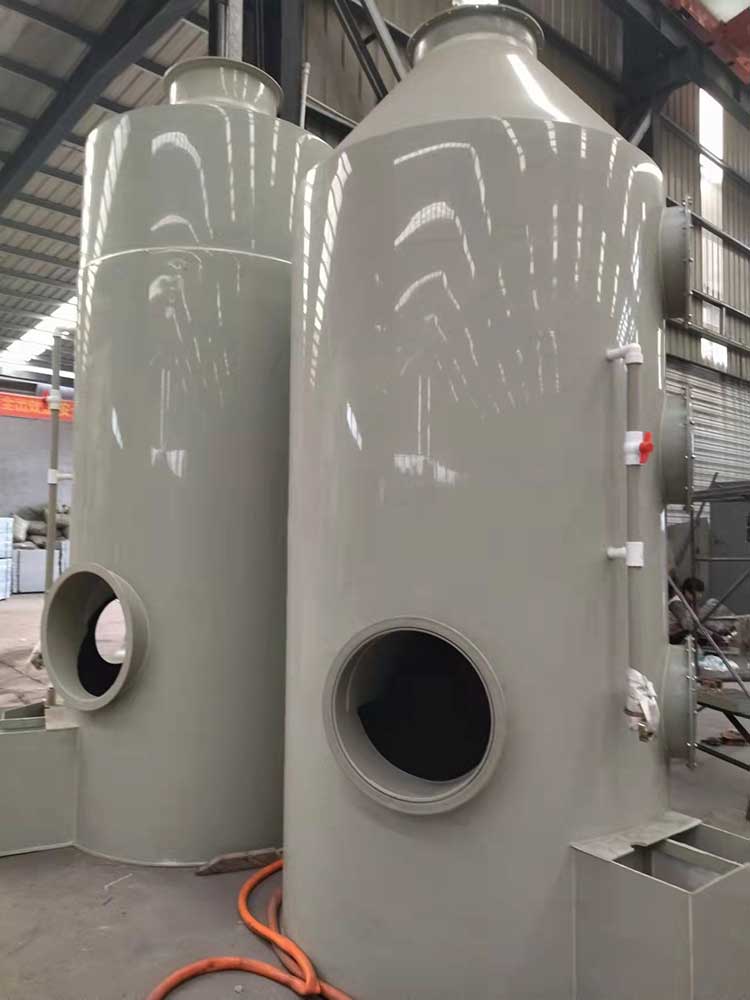 廢氣噴淋凈化塔工作時根據(jù)不同廢氣配不同藥劑,它采用濕法處理的方法來凈化多種有毒、有害廢氣。廢氣噴淋凈化塔它是吸取了泡沫塔、噴淋塔、填料塔等凈化技術(shù)的優(yōu)點而設(shè)計的,有著良好的除塵、除廢氣效果。