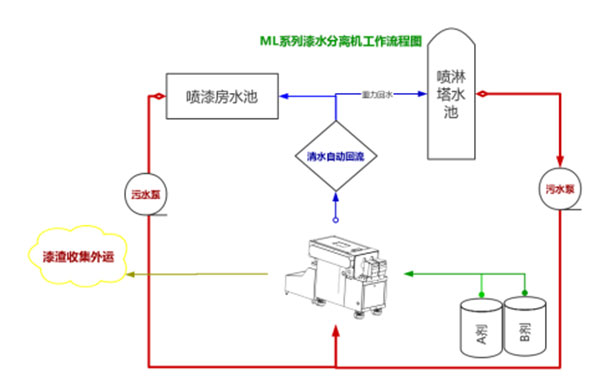 2 工作流程:污水→設(shè)備+藥劑=清水(回用)+漆渣(自動(dòng)分離)