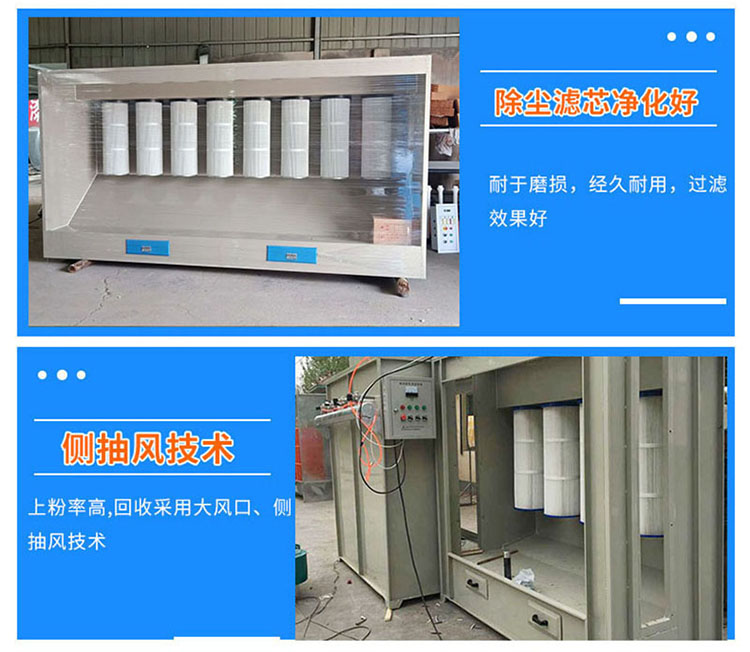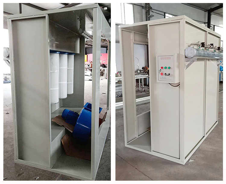 塑粉回收機(jī)由箱體、粉末過(guò)濾系統(tǒng)、抽風(fēng)系統(tǒng)、控制系統(tǒng)等四大部分組成,噴涂時(shí)產(chǎn)生粉塵經(jīng)過(guò)高精度濾筒過(guò)濾,凈化氣流由抽風(fēng)機(jī)排出室外,整個(gè)程序電氣自動(dòng)控制。