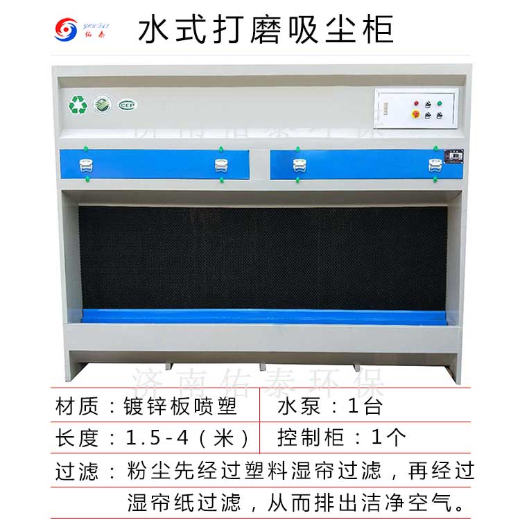 水簾式打磨柜是濕式打磨除塵設(shè)備的一種,是相對(duì)于干式除塵柜而言的另一種除塵設(shè)備,其目的都是達(dá)到凈化空氣,改善工人工作環(huán)境,保護(hù)環(huán)境的目的。水簾附塵柜是一種成本比較低廉的環(huán)保設(shè)備。根據(jù)工作空間的要求,可定制不同尺寸的水式打磨柜。水式打磨吸塵柜由柜體、風(fēng)機(jī)、水簾板、水泵、控制開關(guān)組成。本產(chǎn)品耗能少,吸附能力強(qiáng),維護(hù)方便,專門為家具打磨,石粉打磨等,提供良好的工作環(huán)境。