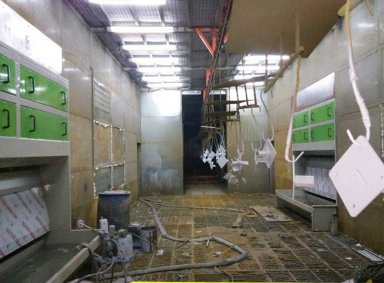 在室體頂部及兩側(cè)墻板設(shè)有照明燈箱,以保證室內(nèi)各部位均具有足夠的光照度;頂側(cè)燈組呈45o角安裝,布置方式為:3支×18W×4組×4行;13米噴漆房,中間位置加兩排燈光。兩側(cè)燈撲均采用專用δ0.6電鋅板制作,美觀大方,又可防止銹跡現(xiàn)象產(chǎn)生。密封膠條耐高溫,不變形、不硬化、不收縮。燈管采用led燈,既安全又節(jié)能且維護(hù)方便,鎮(zhèn)流器采用噴漆室專用鎮(zhèn)流器,從而保證每個(gè)噴漆室體光強(qiáng)≥800Lux,滿足工件各端面的噴涂作業(yè)。