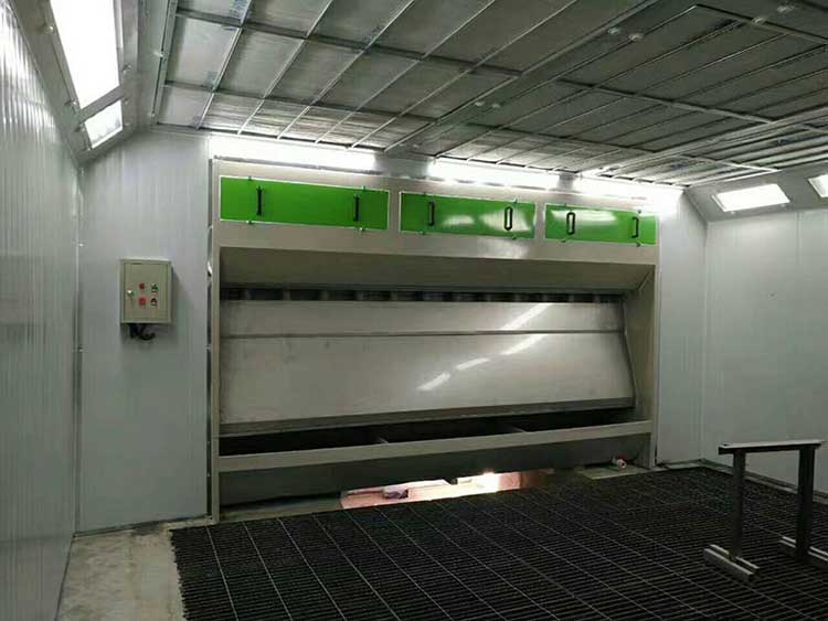 ? 噴漆室:噴漆時(shí)具備通風(fēng)、照明、空氣凈化的功能。噴漆室采用上部送風(fēng),側(cè)部排風(fēng)的漆霧處理結(jié)構(gòu)。漆霧處理設(shè)備為干式噴漆柜和噴漆水簾柜兩種類型。