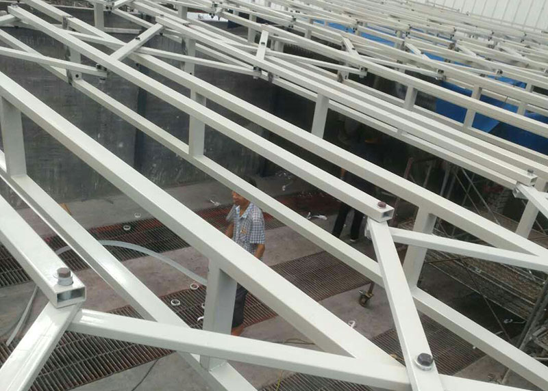三、頂部伸縮噴漆房是移動(dòng)伸縮噴漆房的一種,伸縮頂蓬兩端有固定的支撐,伸縮裝置在固定支撐上面伸縮移動(dòng),方便工件運(yùn)轉(zhuǎn)。以下為您展示安裝圖片。