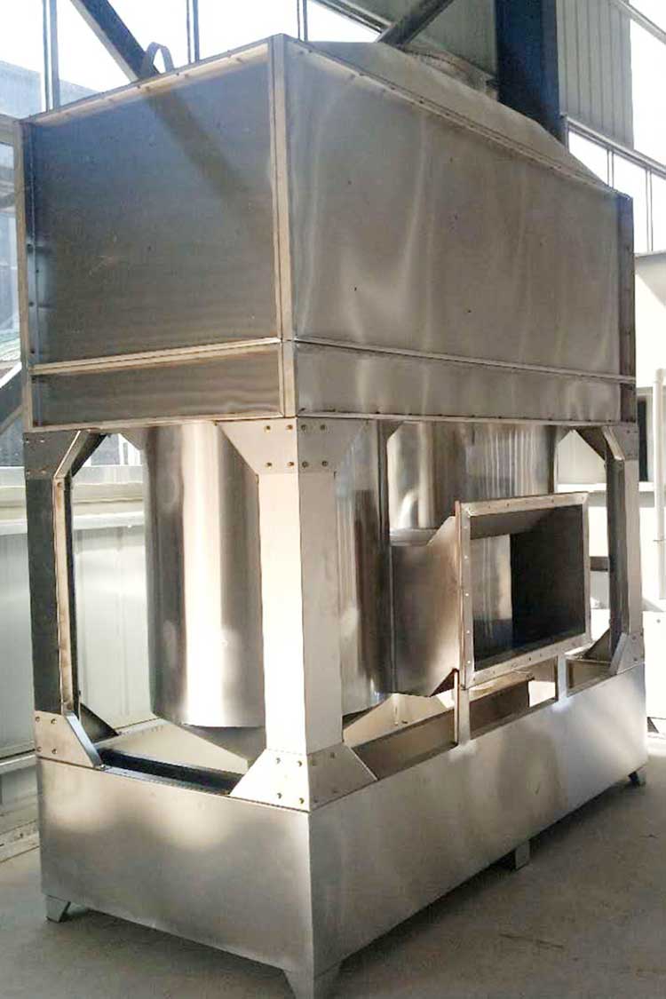 旋流塔內(nèi)安裝有多個“環(huán)形旋流筒”和高效除霧板。旋流桶內(nèi)裝有實心填料球,***上層的除霧板用于凈化水霧,達到脫水霧的目的,含塵氣體在塔板上旋轉上升,并與塔頂進入的液體旋流接觸,完成了除塵任務;廢氣中的大顆粒被離心力作用沉降到水池中,***后由人工撈出清洗機殼,使氣體被凈化,達標排放,同時氣旋塔內(nèi)的水可持續(xù)循環(huán)。