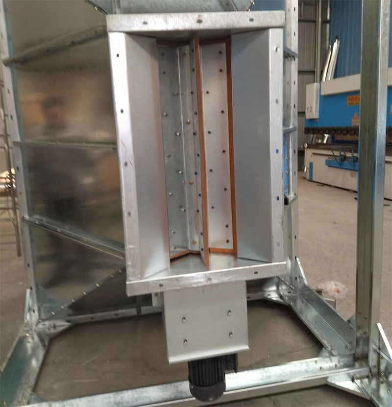 灰斗傾角不宜小于55~60°,且內(nèi)壁要光滑,四個(gè)轉(zhuǎn)角處***好焊接R=200的圓弧形鋼板,消滅“死角”。灰斗壁安裝振打器,每個(gè)灰斗配備兩個(gè)1.1KW電振機(jī),同時(shí)每只灰斗裝一個(gè)可用大錘敲打的在水平方向伸出灰斗加固筋外緣300mm的垂直打擊面,其安裝位置在灰斗捅灰也相鄰的側(cè)壁上。