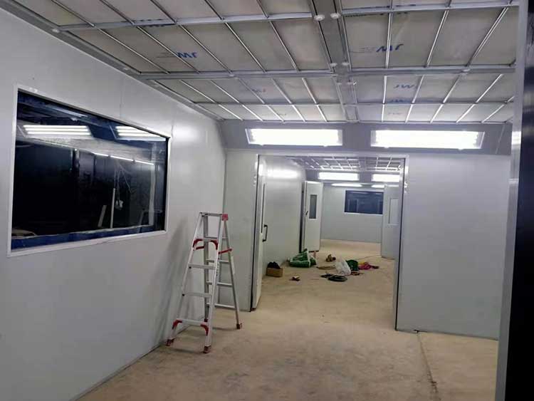 整個(gè)室體結(jié)構(gòu)采用40×40(MM),管壁厚1(MM)方管焊接制成鋼架結(jié)構(gòu)聯(lián)成一體,并經(jīng)過防銹處理;墻板采用彩鋼夾芯板,整體為拼裝結(jié)構(gòu),周遍使用U形槽插口對(duì)設(shè)備室體加固,所有墻板接縫均勻涂抹密封膠;噴漆室包角為鍍鋅板整體折彎成型,包角板與室體骨架與墻板用拉鉚釘固定,拉鉚釘間距誤差不大于5mm,確保外觀整齊。